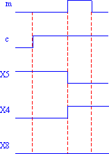 En el ejemplo siguiente la receptividad es cierta en el instante en el que la variable c pasa de desactivada a activada. Si la transición es válida cuando c pasa de desactivada a activada, la transición se franqueará; en el caso de que la transición se haga válida después del cambio de estado de c, no será franqueada.