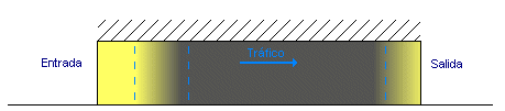 Como al llegar al final de la zona de umbral el nivel de luminancia es todavía demasiado alto, se impone la necesidad de reducirlo hasta los niveles de la zona central . Para evitar los problemas de adaptación, esta disminución se efectúa de forma gradual según un gradiente de reducción o en su defecto una curva escalonadacon relaciones de 3 a 1 entre luminancias. Estas curvas, obtenidas empíricamente, dependen de la velocidad de los vehículos y la diferencia entre las luminancias de las zonas umbral e interior.